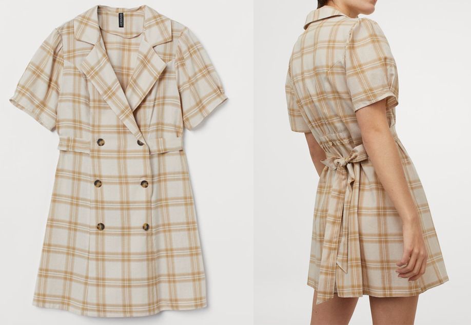 浅色格纹非常减龄,翻领设计加上背后绑蝴蝶结,风格偏可爱清新。搭配白色波鞋,很适合去约会!