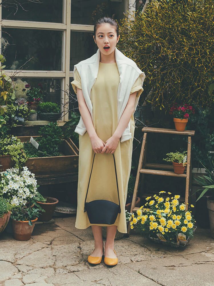 款式干净休闲,棉质具有柔滑光泽感,侧面开衩设计成为亮点。这款淡黄色配色在日本地区非常受欢迎!