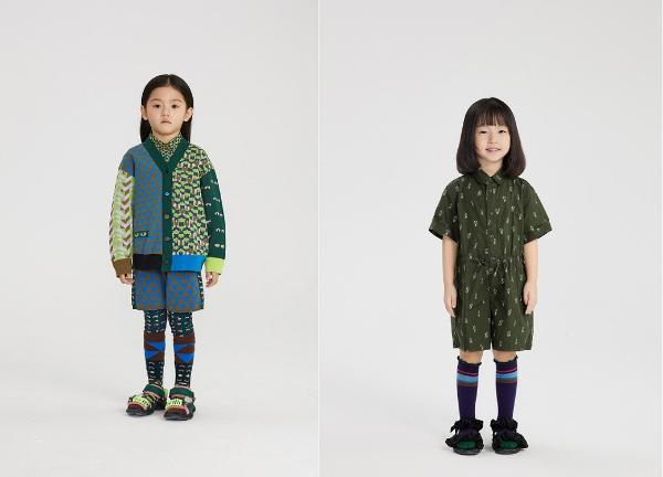 本季的浓彩植物元素主要以小小冒险家春日探索之旅为灵感来源,通过冒险中奇遇的植物花型图案与几何图形的整齐拼接设计,鲜明的蓝绿色色彩明度对比,制造视觉冲击的效果。搭配印花套装,透过别具巧思的拼接轮廓与剪裁设计,赋予了小小冒险家们焕然一新的风采。对于连体衣的整体效果以满底奇异植物图案的衬衫作为版型,腰部的束腰设计以及廓形的裤脚线条,使整体风格保留吸睛穿搭造型的同时,不失小小冒险家们探索中的妙趣横生。
