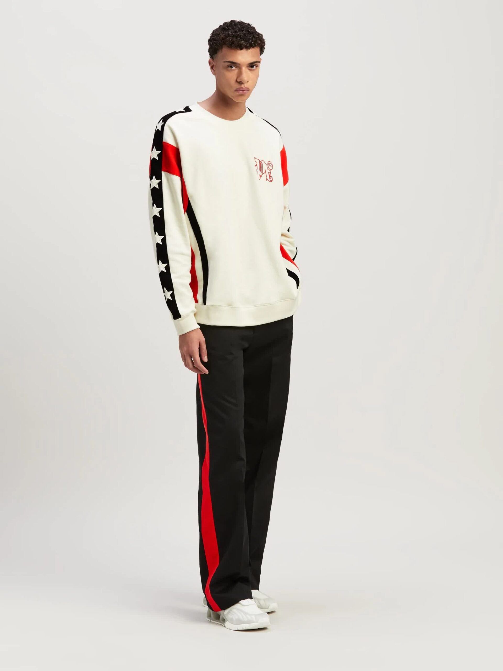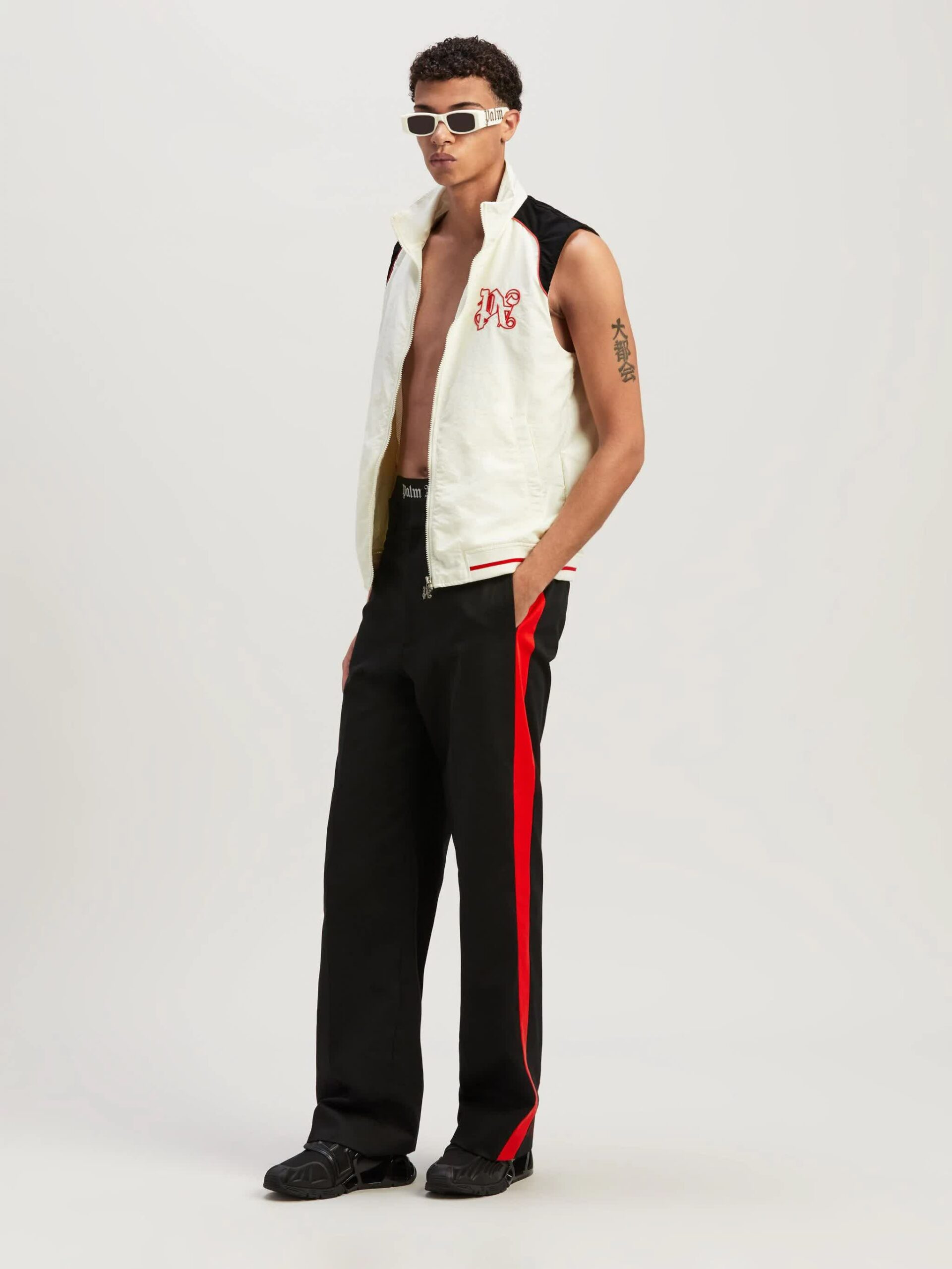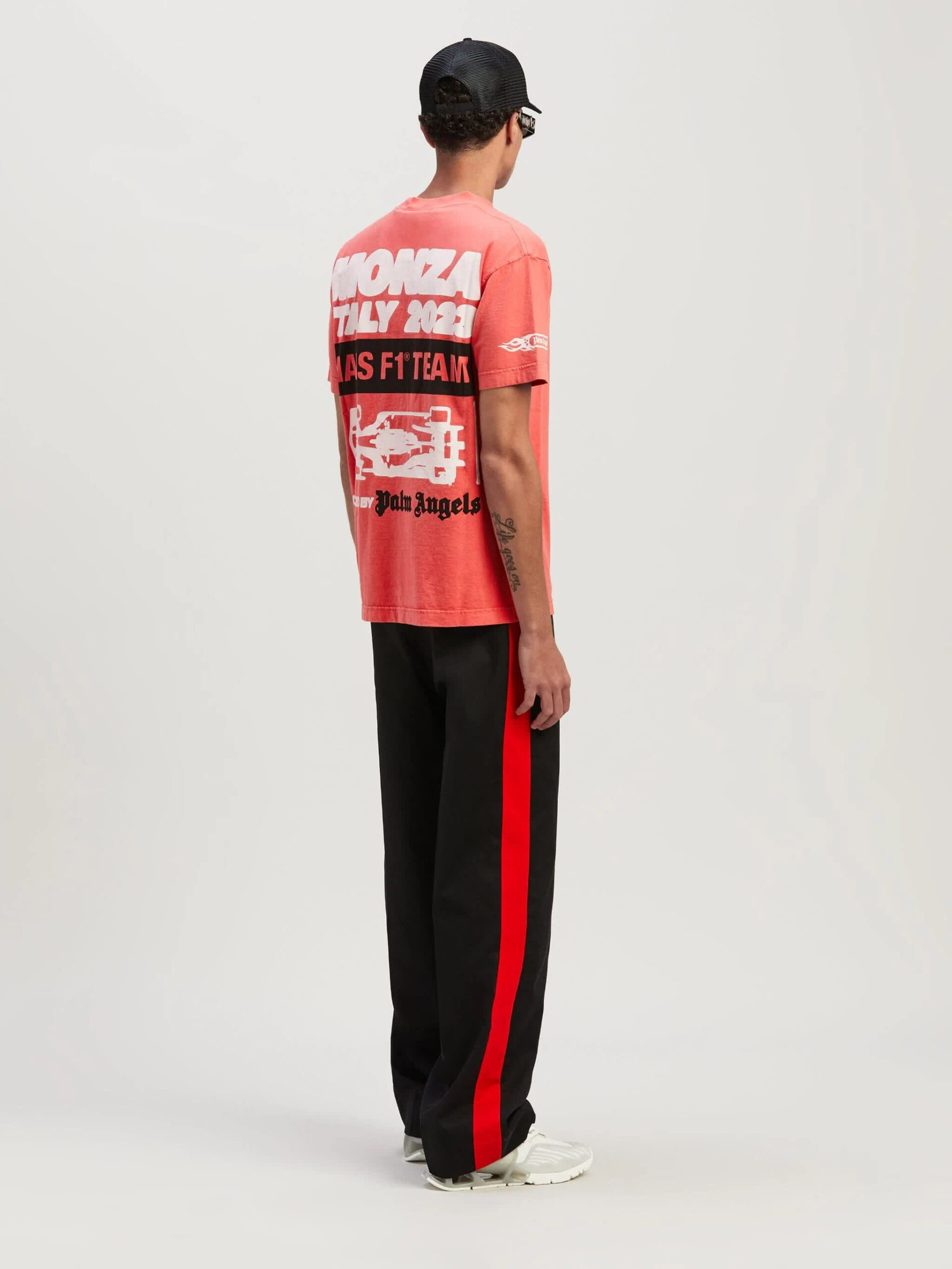 Palm Angels 与 MoneyGram Haas F1 Team 车队携手合作推出胶囊系列,将 Palm Angels 的标志性条纹、哥特式字体和镀铬装饰与 MoneyGram Haas F1 Team 的方格旗、运动线条等赛车风格设计融合。该系列包括 The Flags 赛车飞行员夹克、功能性 T 恤、棒球外套等单品,巧妙地将街头时尚与赛车元素相结合。